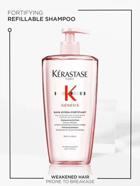 Oil-control shampoo for weakened hair, prone to breakage. Reinforces hair fibre to prevent hair-fall when brushing, whilst gently removes sebum for effective oil-control for healthy roots and lengths. Deliver hair the ultimate in anti-breakage protection with the Genesis Hydra-Fortifiant Shampoo. This strengthening shampoo reinforces the fibre to reduce hair-fall caused by breakage when brushing, whilst simultaneously clarifying the scalp to remove sebum for fresh, healthy results. Formulated as a ultra-delicate shampoo for oily, damaged hair, this product cleanses strands from root-to-tip, removing impurities while maintaining a lightweight, hydrated finish